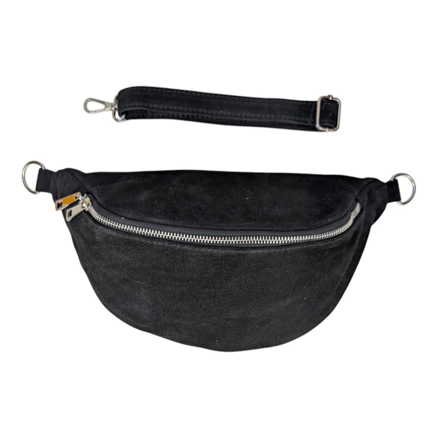 Bauchtasche Wildleder Schwarz silberfarbener Reißverschluss